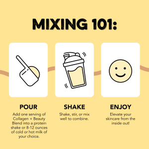 HOW TO USE: Add one serving of Collagen + Beauty Blend into a protein shake or 8-12 ounces of cold or hot milk of your choice. Mix well and enjoy!