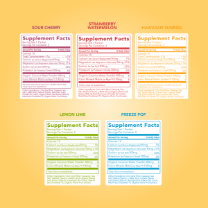 FLAVOR PROFILE: Free idea: drink more water. Better idea: add Hydrate + Electrolytes for a hydrating flavor boost that quenches your thirst! Our Variety Pack includes five refreshing flavors: Strawberry Watermelon. Sour Cherry. Hawaiian Sunrise. Lemon Lime. and Freeze Pop.
